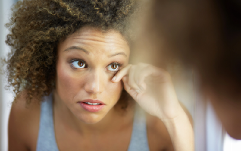 - Nghiêng đầu ra sau và kéo nhẹ mí mắt dưới xuống để tạo thành một túi nhỏ.